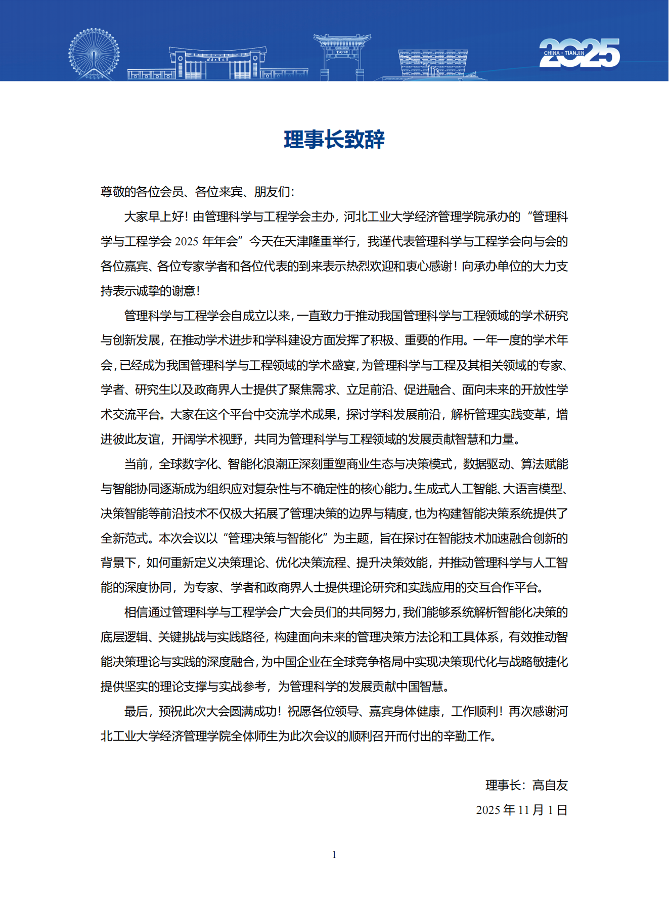 会议手册发布!管理科学与工程学会2025年年会
